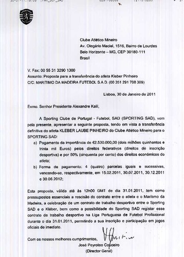 Recentemente o Sporting quis contratar o jogador Kleber, emprestado pelo At. Mineiro ao Maritimo.